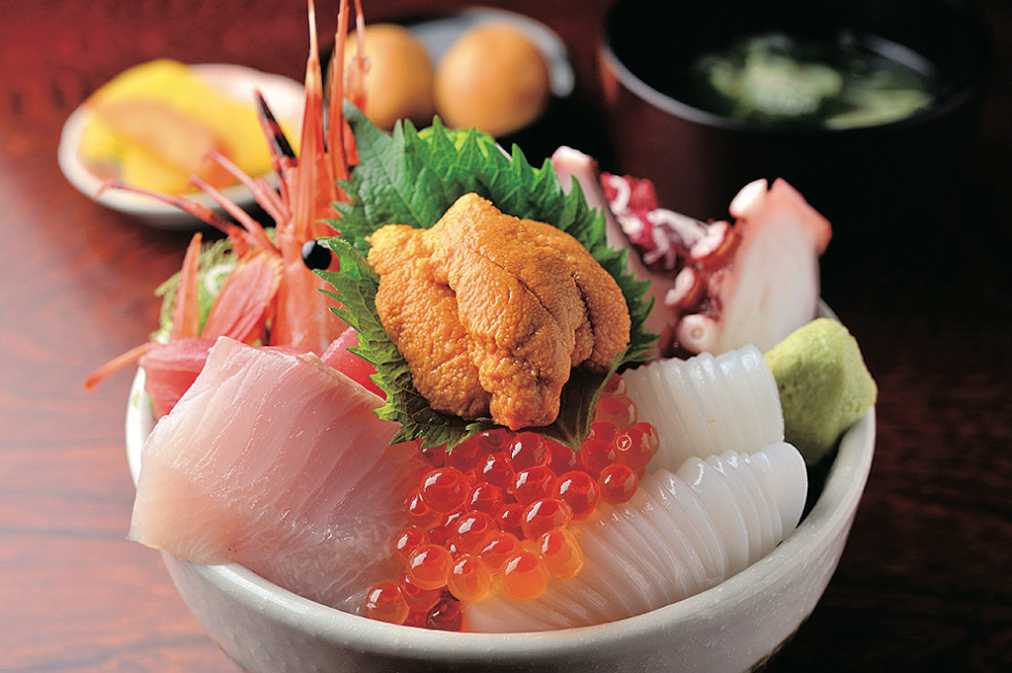 お得メニューとして地元でも人気の海鮮丼2000円(夜は2100円)がおすすめです。毎朝仕入れる新鮮なアジのほか、マグロ、イクラ、ウニ、ボタンエビなど器からこぼれるほどに盛られた豪華な丼ぶり。毎日来ても飽きないよう一品メニューも豊富です。