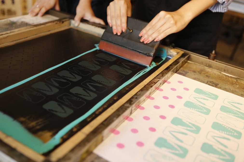 郡上の地場産業であるシルクスクリーン印刷で、手ぬぐいやトートバッグのプリント体験ができます。絵柄と色の組み合わせを決めたら、自分自身の手でプリント。かわいい絵柄がいっぱいで、色数も多数あるから自分好みの想い出の品が作れます。
