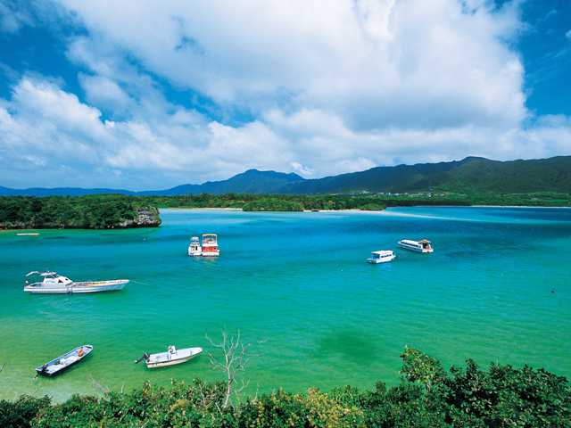 石垣島の海岸沿いを反時計回りにドライブ。島の北西に位置する川平湾は絶対に見逃せない石垣島随一の景勝地です。海底まで透けて見えそうなエメラルドグリーンの海に点々と浮かぶ緑の島々。白い砂浜とのコントラストはまぶしいほどで、眺めているとついつい時間を忘れてしまいそう。