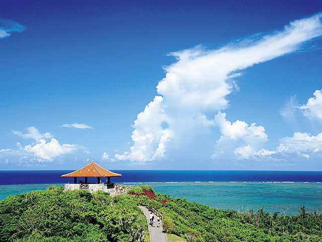 新石垣空港から海沿いを北上すること約20分。島内でも1、2を争う絶景ポイント、玉取崎展望台を目指します。ハイビスカスが咲く小高い丘を登ると太平洋と東シナ海を望む大パノラマ。正午から午後にかけて海の色がきれいに見えるチャンスです。リゾート気分は一気に最高潮!