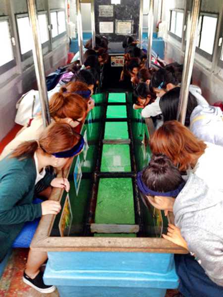 川平湾は潮の流れが速く、残念ながら遊泳は禁止。そこで登場するのがグラスボートです。船室の底がガラス張りになったボートに乗り込み、間近から熱帯魚やサンゴを鑑賞できます。サンゴ礁の上を泳ぐ色鮮やかな魚たちに釘付け!