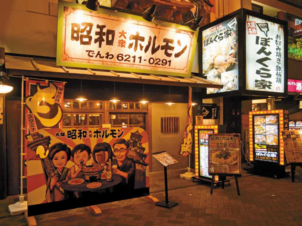 大阪名物ホルモン焼肉の繁盛店。常時40種類以上の品揃えで、七輪の炭火で味わうホルモンは一度食べたらヤミツキになるおいしさです。昭和30年代をイメージした昭和レトロな店内もどこか懐かしく感じられ、腰を落ち着けて味わえる雰囲気。食べ放題メニューもありますよ。