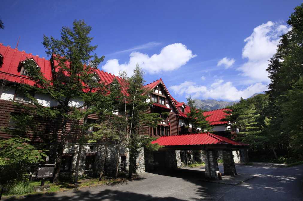 日本初の山岳リゾートホテルとして開業した上高地帝国ホテルは、梓川の畔に広がるカラマツ林の中にひっそりとたたずんでいます。ぬくもりのある木の外装と赤い屋根がかわいくて、ヨーロッパのリゾートホテルを思わせるクラシカルな雰囲気です。