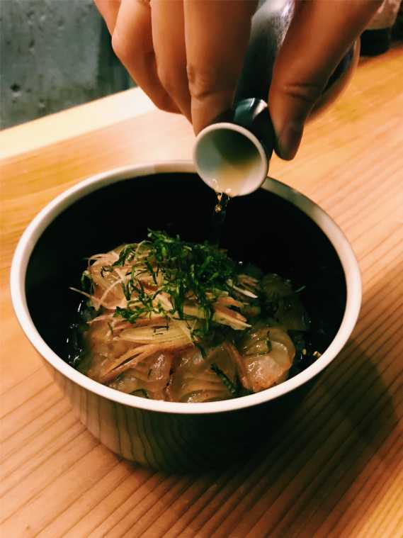 最後にご紹介するのが、写真の鯛茶漬け。一見普通に見えますが、回しかけているお茶はなんとアールグレイ!店主におすすめされるがまま食べてみましたが、想像をはるかに超えて絶品!