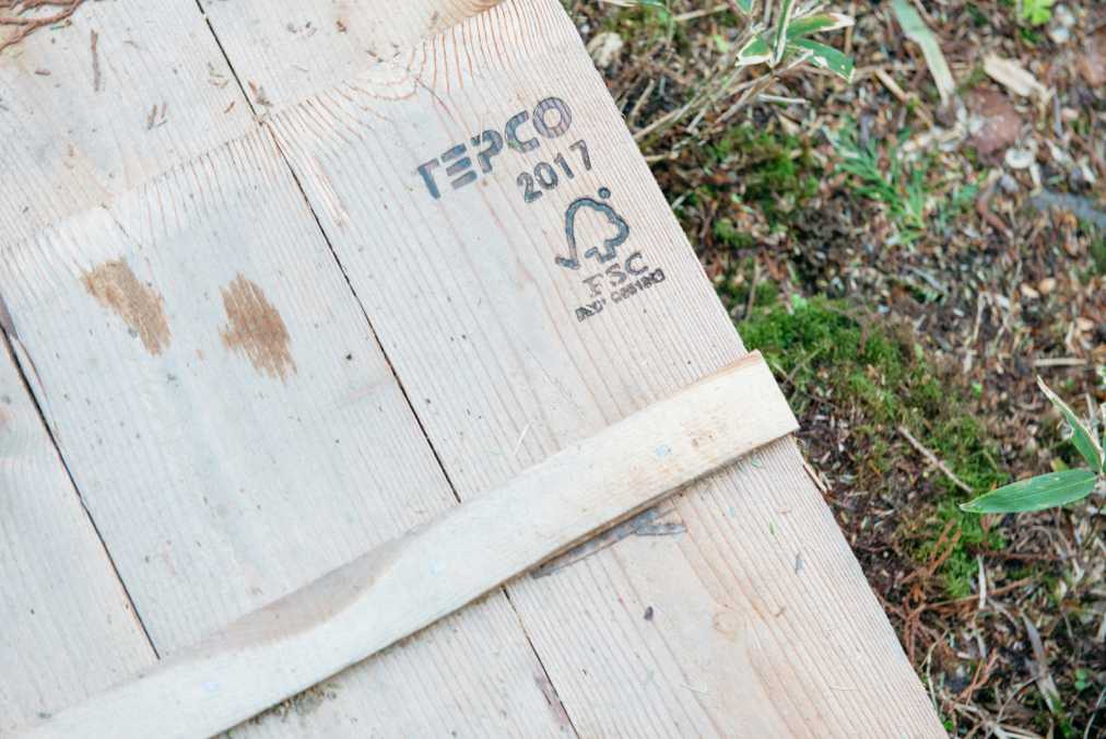 木道の途中にかわいいマークを発見。こちらは2017年に東京電力(TEPCO)がしいた木道のようです。木道の板は約10年の周期ではりかえるそう。作業する方に感謝しながら、みんなでわいわいと進みます。