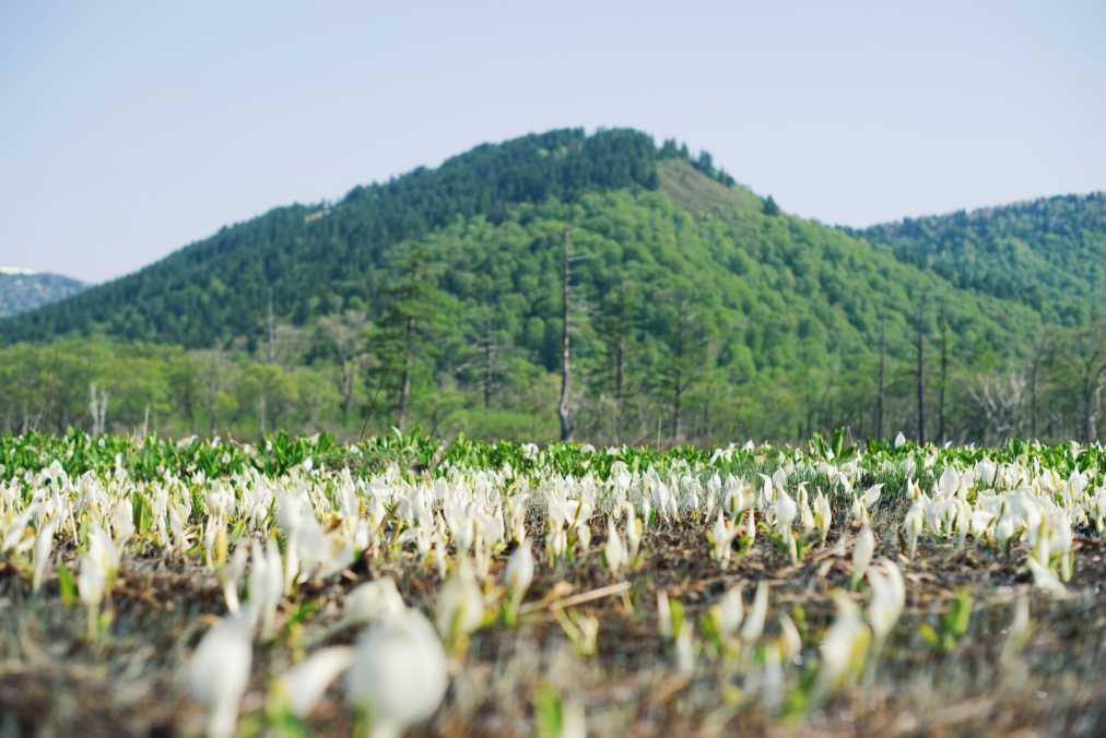 雪解け後の尾瀬の春、5月下旬~6月上旬はミズバショウの季節。美しく咲くミズバショウの群生を見ることができます。7月になると綿毛をつけたワタスゲが一面に広がり、そのあとは黄色いニッコウキスゲが咲き誇ります。