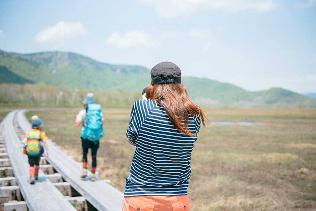 尾瀬のハイキングコースには木道がひいてあり、初心者でも安心。とても歩きやすいんです。湿原を踏み荒らさずに、自然に優しく歩けるのも嬉しいところ。