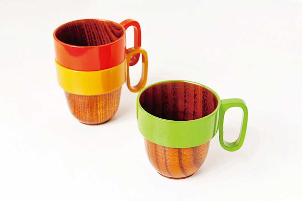 漆器スタッキングマグカップ6156円は、木目とビビットカラーの組み合わせが印象的。12のカラーから選べるので、どれにしようか迷っちゃいます。重ねて収納できるうえに軽くて丈夫なので、毎日の食卓はもちろん、ピクニックにも活躍してくれます。