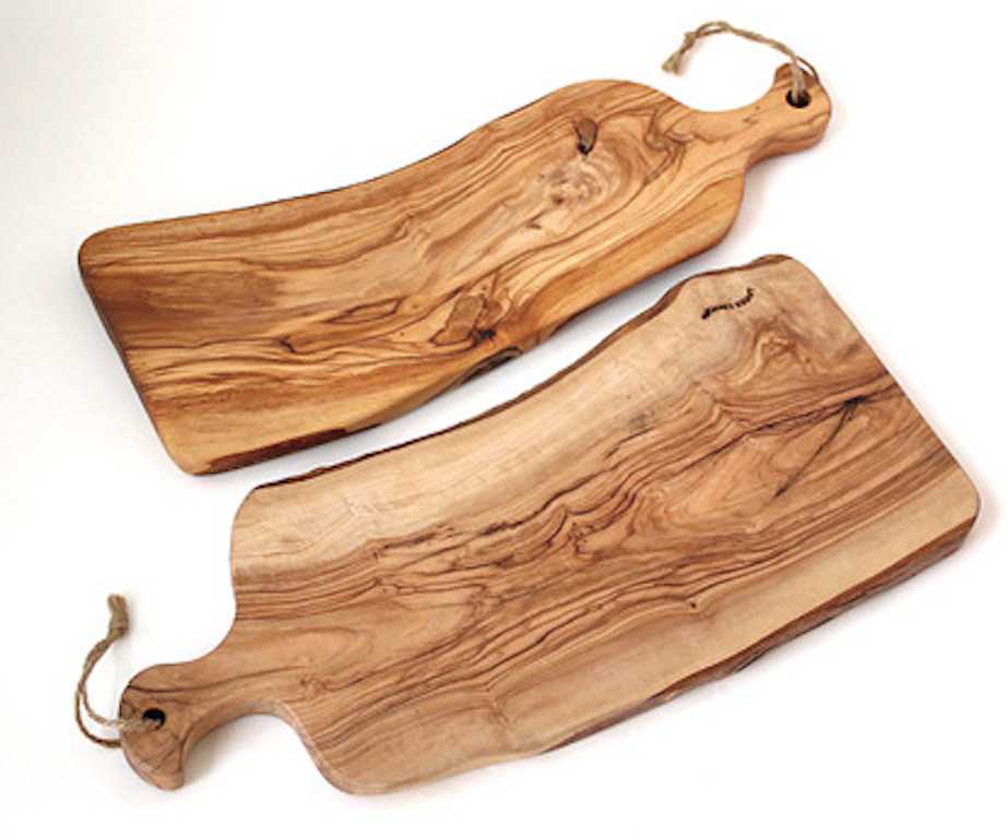 小豆島のオリーブの木から生まれたカッティングボード6800円〜は、家具職人がひとつひとつ手作り。パンや焼き菓子をカットして食卓に出せば、一気にカフェ風に。オリーブの美しい木目が、料理を主役級に引き立ててくれます。