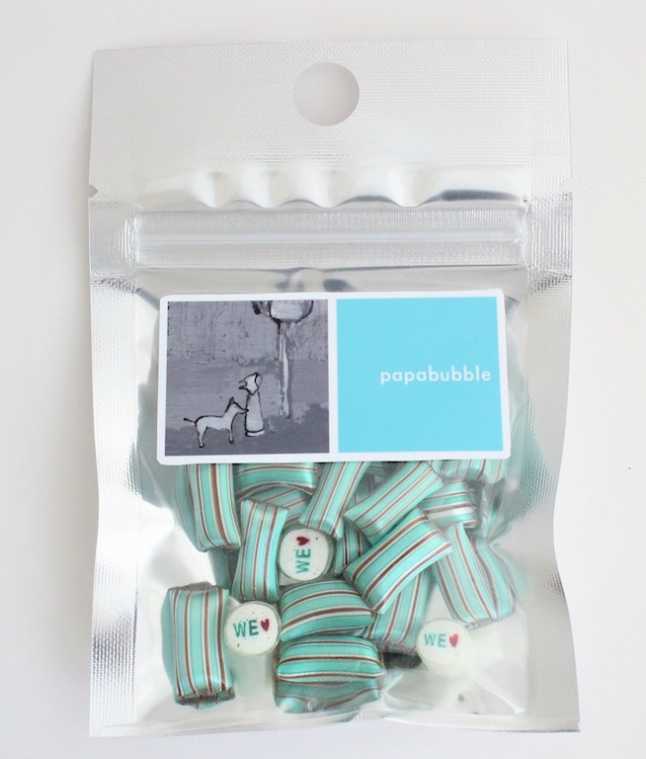 チョコミントキャンディは、キャンディとチョコレートを17層ものミルフィーユ状に重ねて作った、芸術的な美しさの逸品。「WE LOVE」の文字が入ったアップル味の限定キャンディ入りで、BAGは580円/40g。ほかにJARタイプで、800円/50g、2300円/170gがあるのでお好みで。