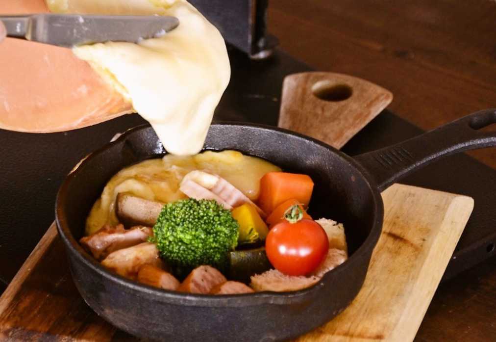 人気のラクレットチーズ1180円は、2人分から注文可能。ワインなどのお酒との相性も抜群です。