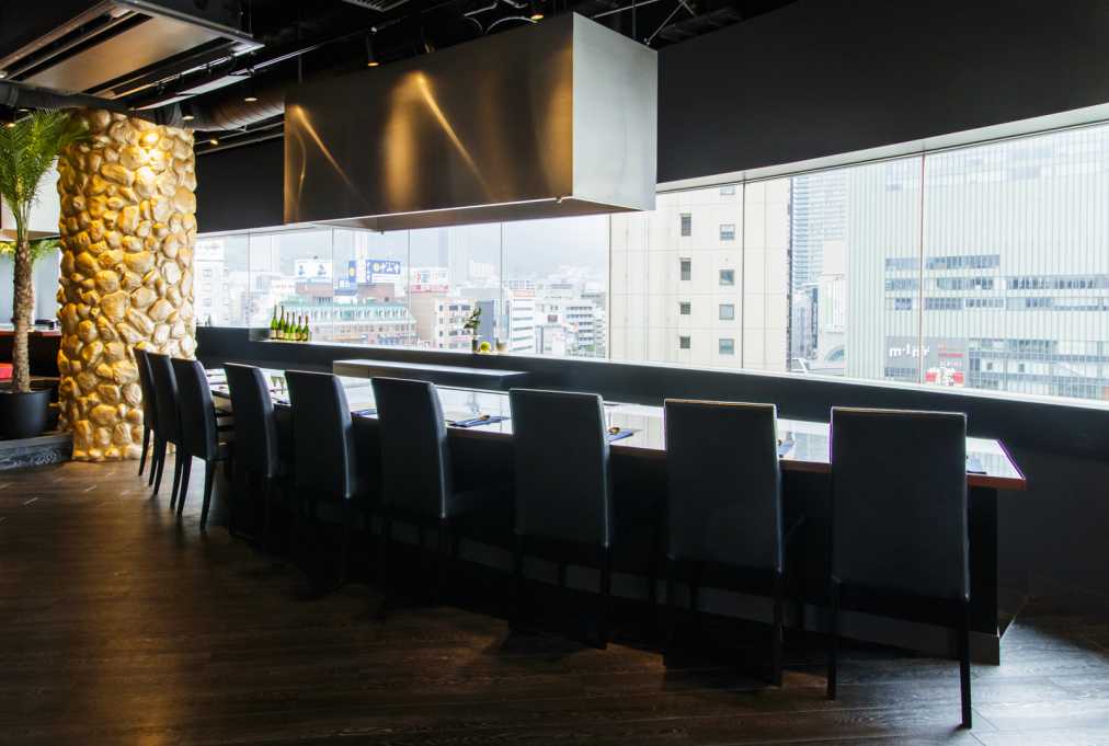 JR三ノ宮駅直結のビル内にありアクセスは抜群。神戸市内の真ん中で贅沢に神戸牛が味わえると人気の店です。店内は黒と金色を基調に高級感が漂い、夜になると目の前の大きな窓からは神戸市内の夜景を眺めることができます。
