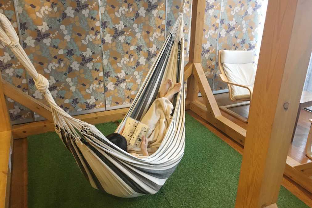 好きな雑誌やマンガを本棚から取り出して、ハンモックに潜り込めば心も身体もリラックス。 自分の家のように、いや、それ以上にくつろげます。