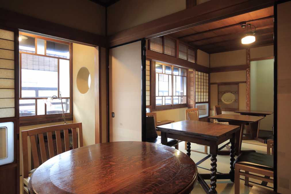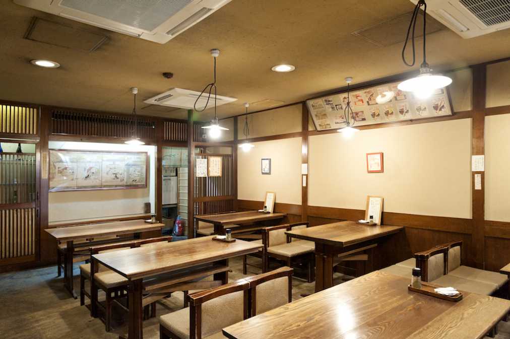 店内はテーブル席が中心。木造のテーブルと椅子が並ぶ気取らない空間は、昭和時代の趣がそのまま残っているよう。歴代の弁当のラベルが収められた額縁も必見ですよ。