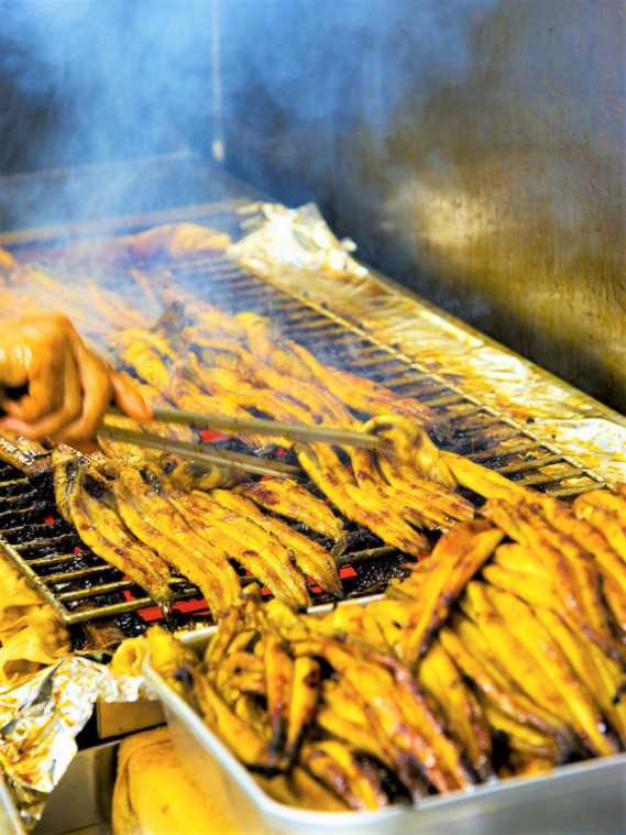 アナゴは脂ののった上質なものを使用。今でも創業当時から変わらない手焼きで作られています。一度素焼きした後に秘伝の薄味タレをつけ、さらに焼くのがうえの流。余分な脂が落ちて上品な味わいに仕上がります。