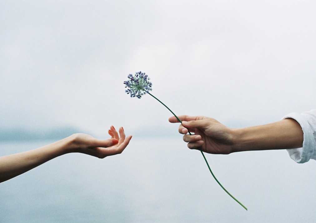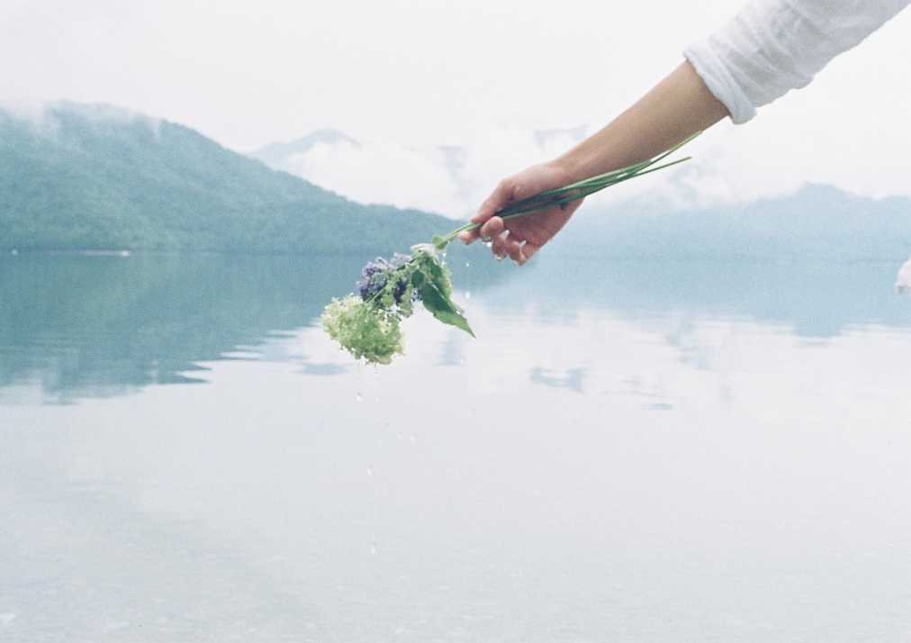 事前に用意していた撮影用のお花を友人に持ってもらい、ストーリー性のある一枚に。