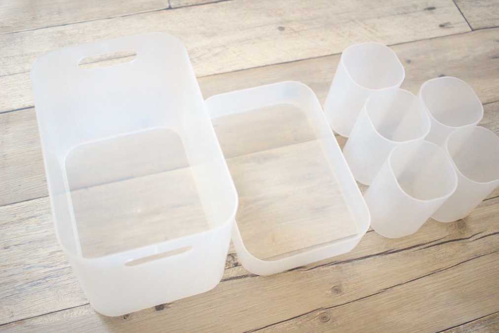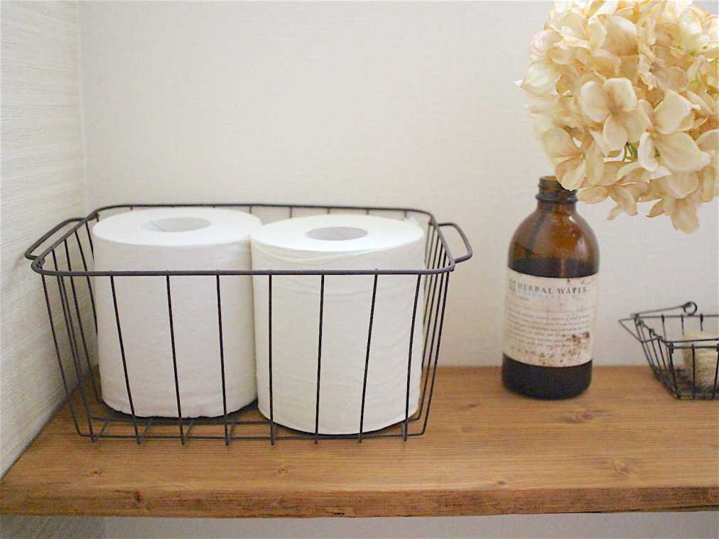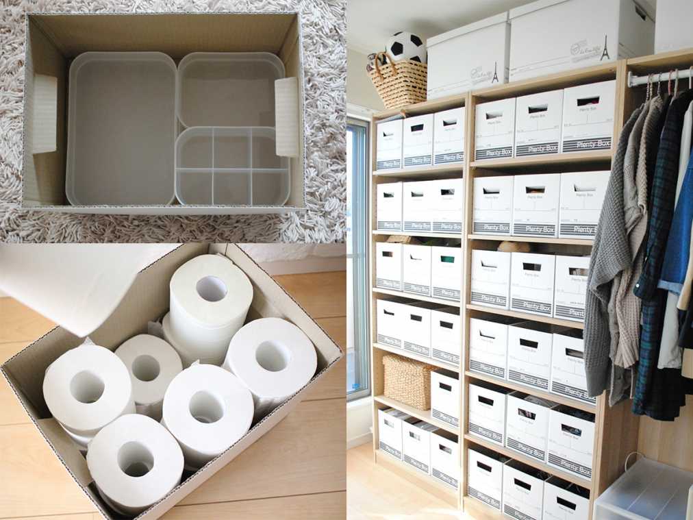 例えば、写真左上のクリアボックスやトイレットペーパーだって、こんなにキレイにシンデレラフィット! ほかにも一般的なボックスティッシュも、この“A4サイズのボックス”にぴったりと収まるんだそう。