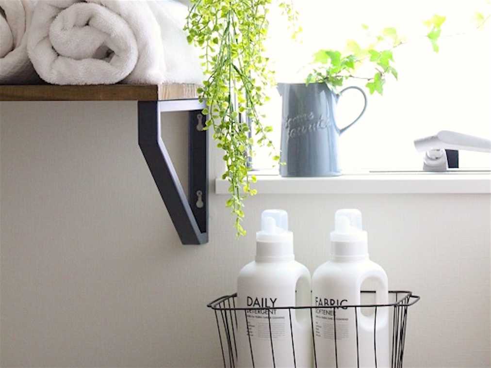 洗濯用洗剤もワイヤーバスケットに収納すれば、生活感がなくなりスタイリッシュな雰囲気に。