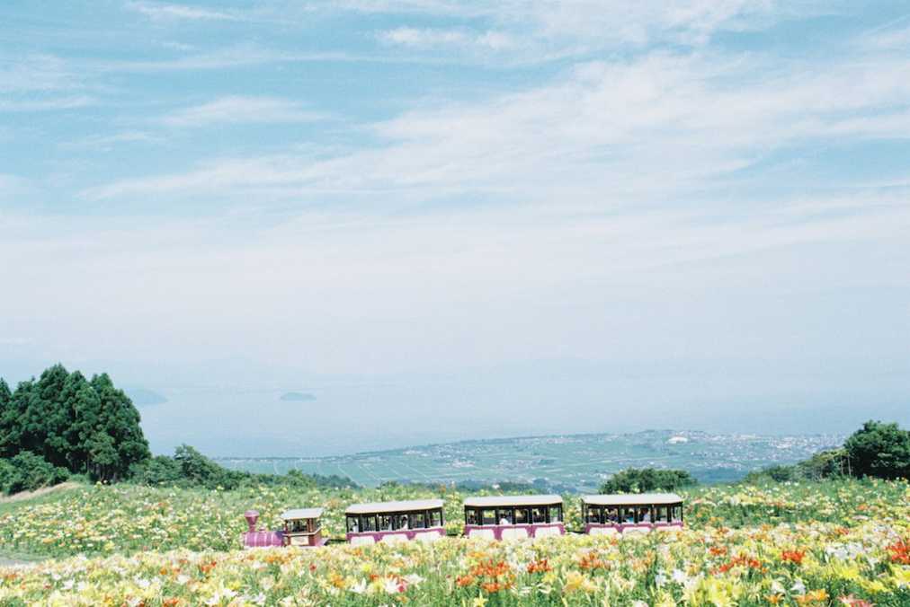 ゆり園の中は、リフトの他にも、ゆりトレインが走っています。絶景スポットでは、トレインも止まってくれるので、ゆりも景色もゆっくりと楽しめます。