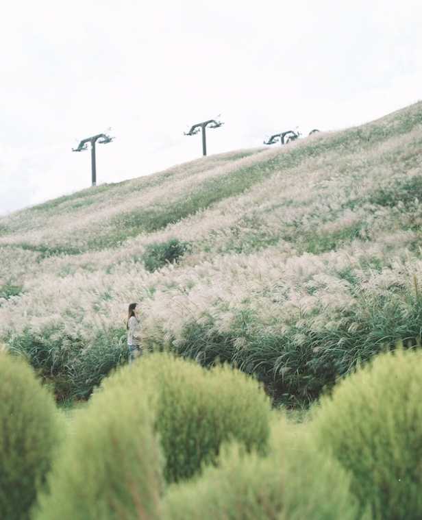 ゆりが終わって、9月中旬から約1ヵ月間の初秋もおすすめ。コキアも赤くなり、山一面がススキにおおわれて、こちらもまた素敵な光景になります。ふさふさのススキが風になびく様子はとても綺麗。