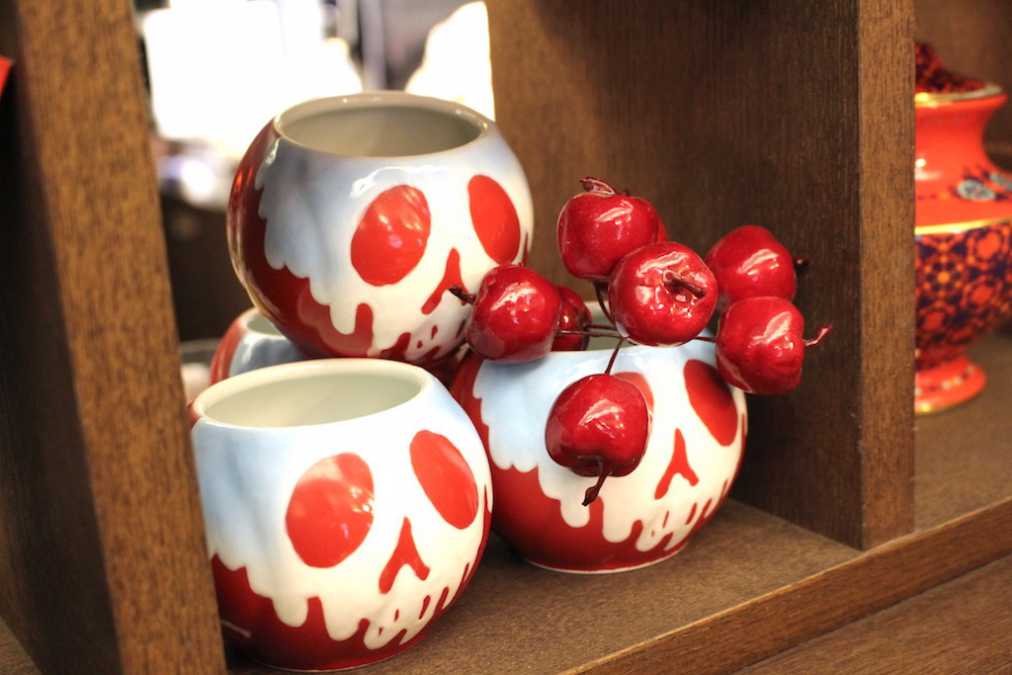 毒リンゴをイメージしたカップは、オーナーのオリジナルデザイン。紫芋のジェラートとリンゴケーキのパフェ「白雪姫の毒リンゴ」(734円)のうつわとしても使われています。