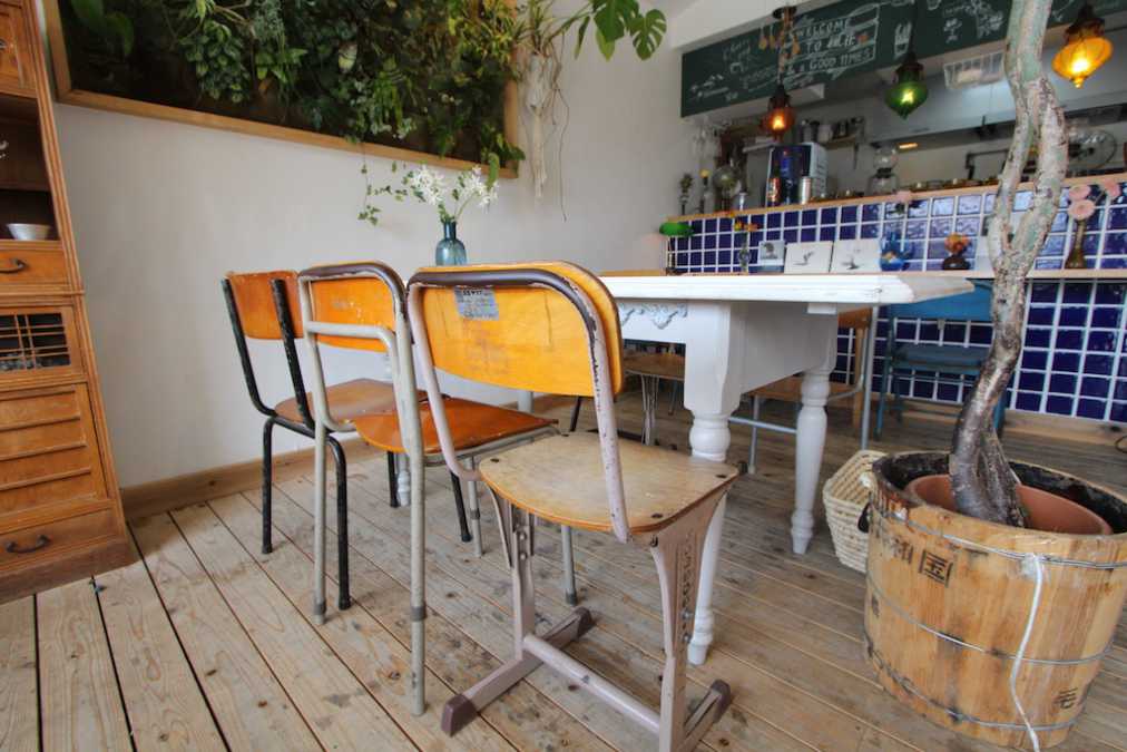 小学校の教室を彷彿とさせる椅子は、とても懐かしい気分にさせてくれます。過去に戻ったような、ゆったりとした時間が心地いい空間。