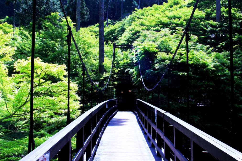 川床席へ向かう「もみぢ家」専用のつり橋。非日常への入口のようでワクワクします!