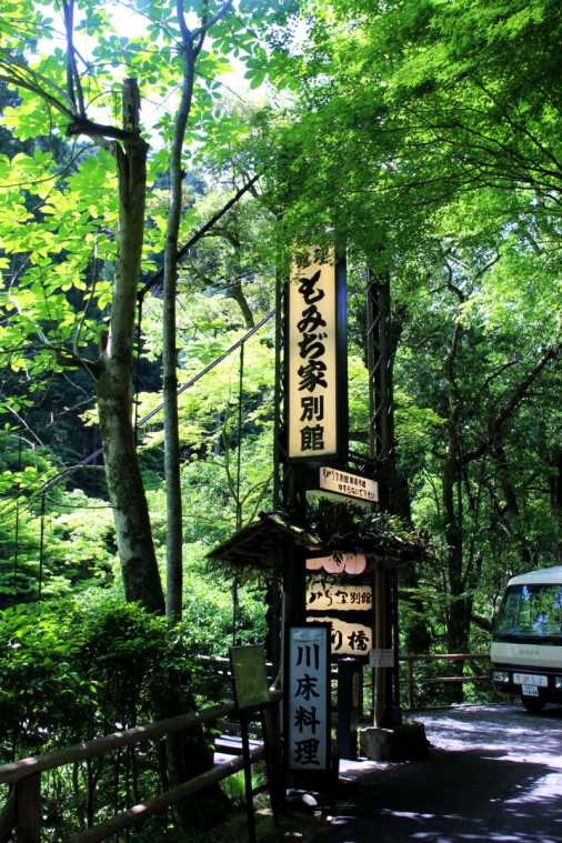清滝川にせり出すようにして作られた、自然と清流を間近に感じられる高雄の川床。京都市街より3~5℃涼しく、マイナスイオンもたっぷり感じられます。
