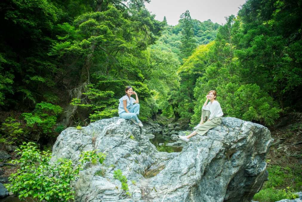 また、清滝川沿いの東海自然歩道には、知る人ぞ知るフォトジェニックスポットがあるんです。それが、別名「猿飛岩」とよばれる、ハートの形をした大きな岩。大自然のパワーが感じられるスポットだけあって、この岩で撮影したら幸運になれそう!
