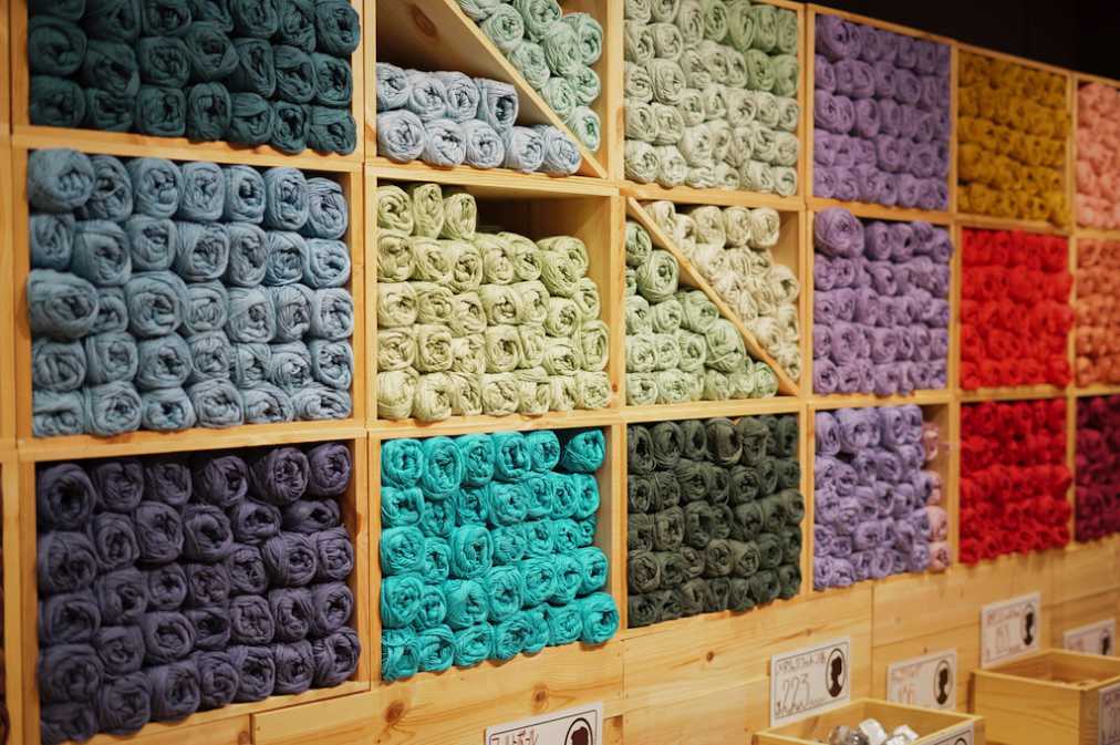 圧巻の毛糸コーナーには、さまざまなカラーや素材を使った毛糸が約20種類(193円〜)あり、見ているだけでも「何を作ろうかな?」とワクワクします!