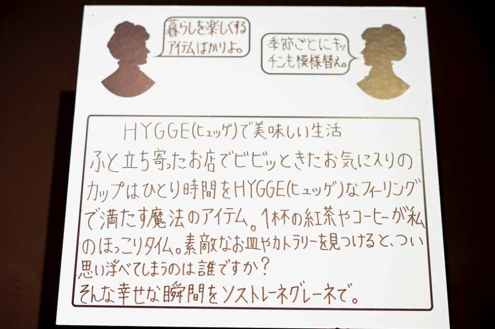 店内のいたるところに貼られているこちらのパネル。上に描かれているのは「アンナとクララ」という架空のソストレーネ姉妹。デザインなどが好きな左脳派のクララ(写真右)と、ロジカルで右脳派のアンナ(写真左)の会話がインテリアづくりをさらに楽しくしてくれますよ。