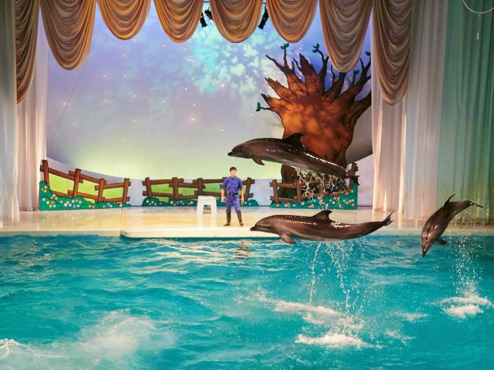 まるで舞台を見ているような大迫力!ストーリー展開に合わせてジャンプを繰り広げるイルカがスゴイ!