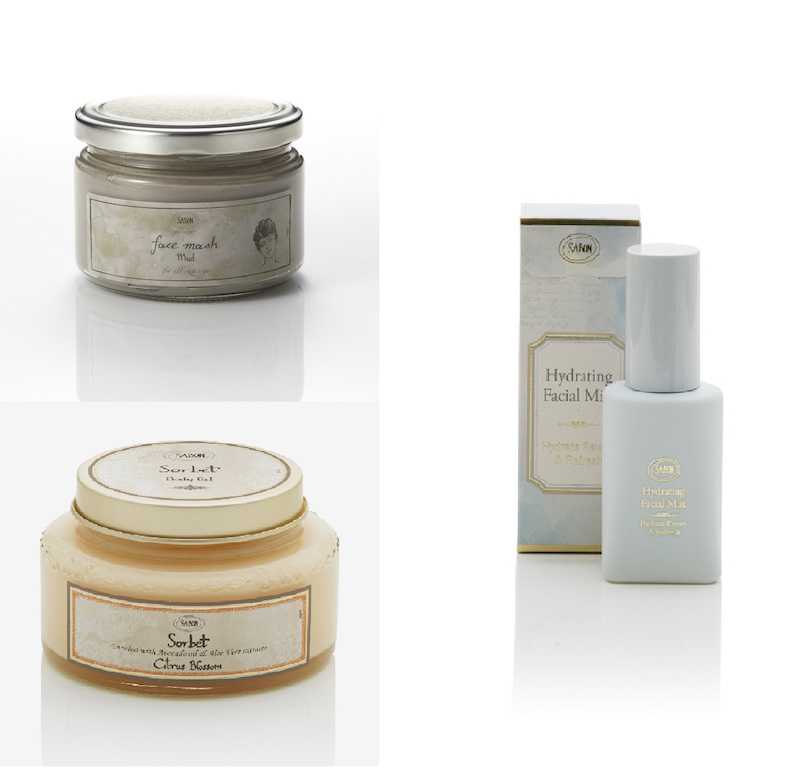 死海の泥を使用した「Face Mask Mud(フェイスマスク マッド)」4800円(※写真左上)や、メイクの上からもシュッとひと吹きできる「Hydrating Facial Mist(ハイドレーティングフェイシャルミスト)」3500円(※写真右)、ジェルベースのボディローション「Sorbet Body Gel(シャーベットボディジェル)」4000円(※写真左下)など、どれもひんやり心地いい!