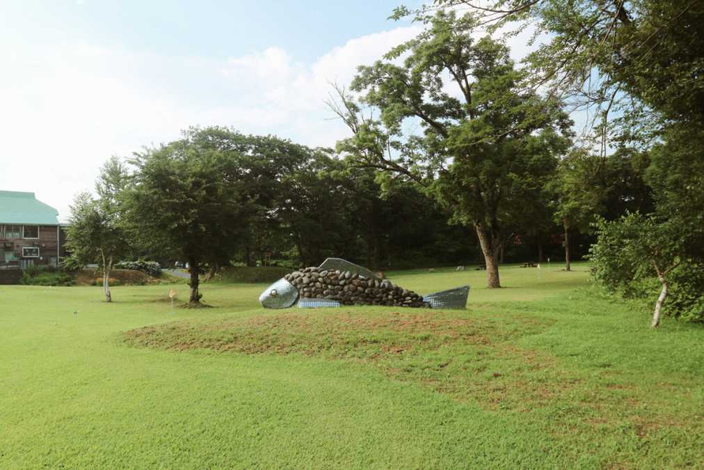歩いていたら、大きなお魚のモニュメントを発見。なんとこの池、4mほどの巨大魚が目撃されているんです。その名も“浪太郎”!お散歩しながら探してみるのもいいかもしれません。