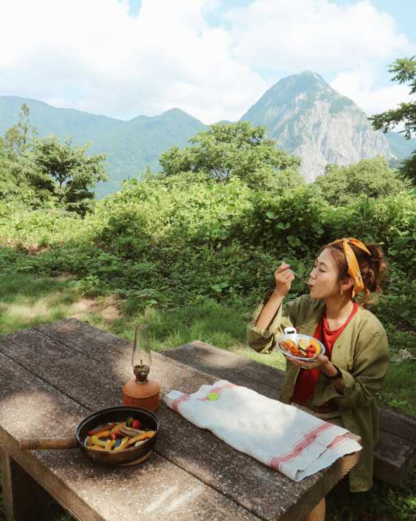 敷地内にはテーブルとベンチが所々にあるので、手軽に日帰りキャンプをしてみるのもオススメです。簡単なご飯を作って、迫力のある明星山を眺めながらのランチタイムなんてどうでしょう?きっと特別な時間になると思います。