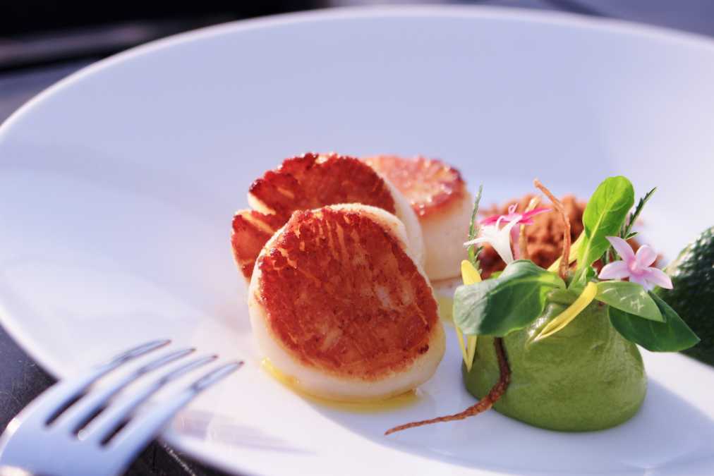 そんな贅沢なシチュエーションにぴったりの料理は、世界各地の一流ホテルやレストランで腕を磨いたシェフが手がけるこだわりのグリル料理。白いお皿の上に描かれた絵画のようなフォトジェニックな料理が並びます。