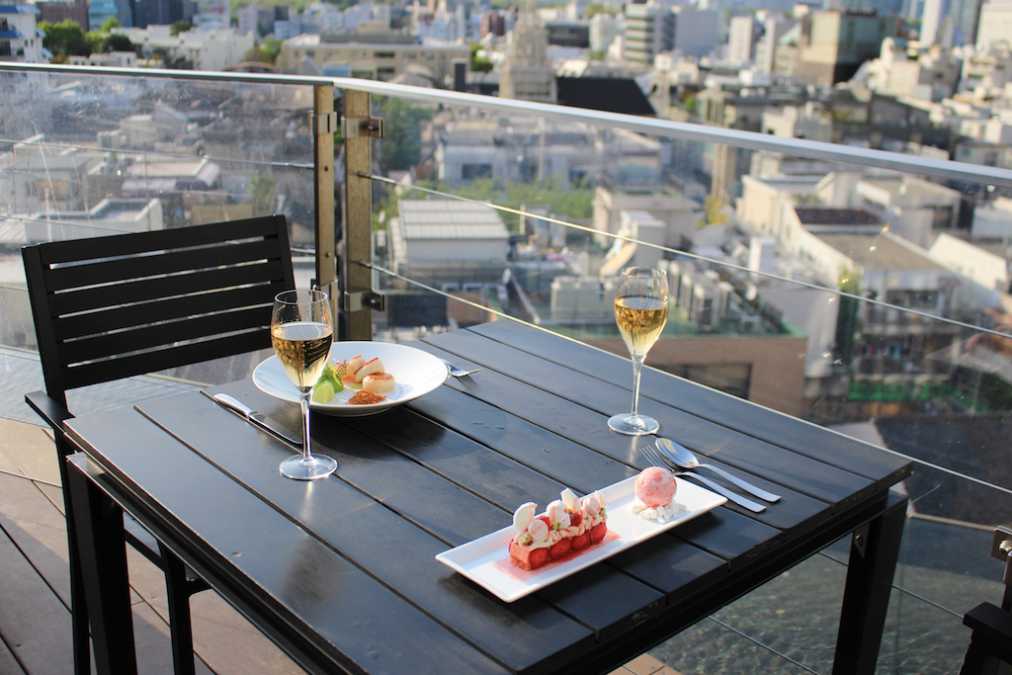 空に浮いたようなテラスバーで、暮れゆく街並みを眺めながら風を感じるひとときは別世界にトリップしてきたかのよう。いつもよりもゆっくりと時間が流れていくような気さえしてきます。