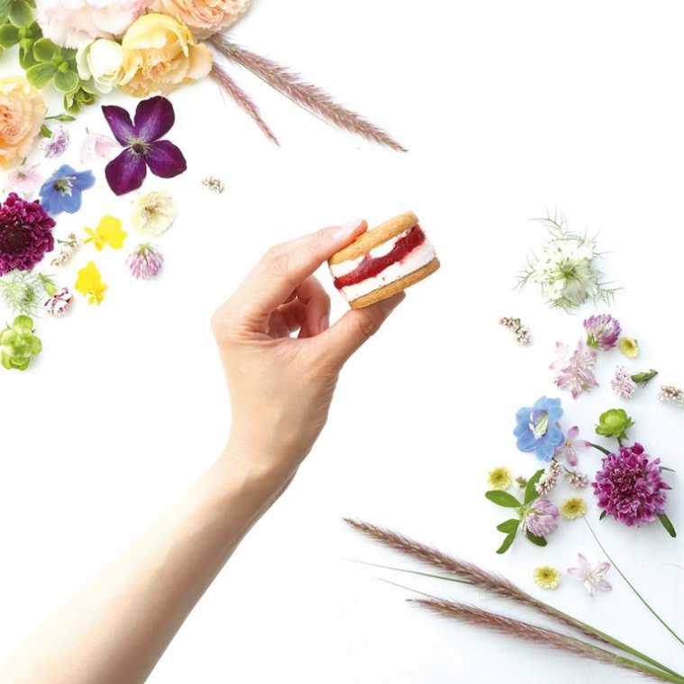ミルククリームと各フレーバーを発酵バタークッキーでサンドした「ガトーサンド」は、“手の平に乗るケーキ”をイメージした華やかなクッキーサンド。