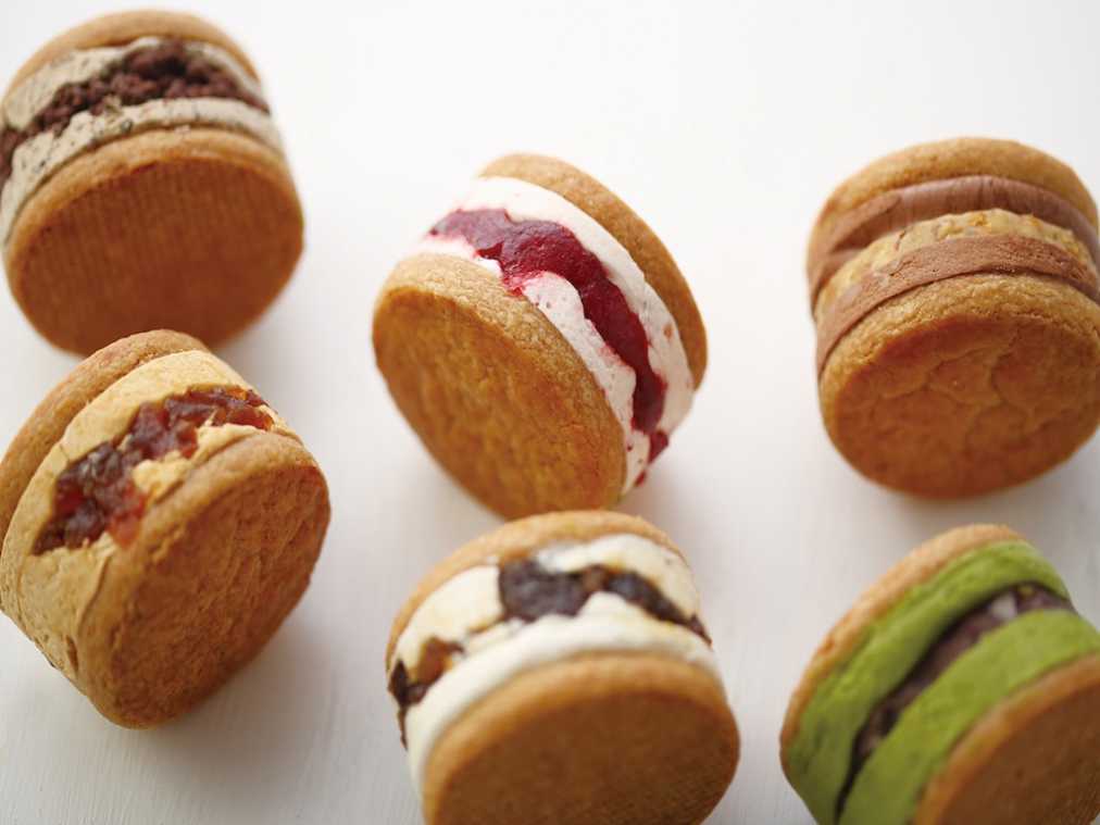 苺のクリーム&甘酸っぱい苺のコンフィチュールとラズベリーをサンドした「ベリー」や、砕いたコーヒー豆とマスカルポーネを混ぜたクリームに、ココアクランブルをサンドした「コーヒーマスカルポーネ」、香り高い西尾抹茶のクリームと、十勝産小豆の粒あん、かのこ豆を合わせてサンドした「抹茶」など、全6種類のラインアップで展開されます。