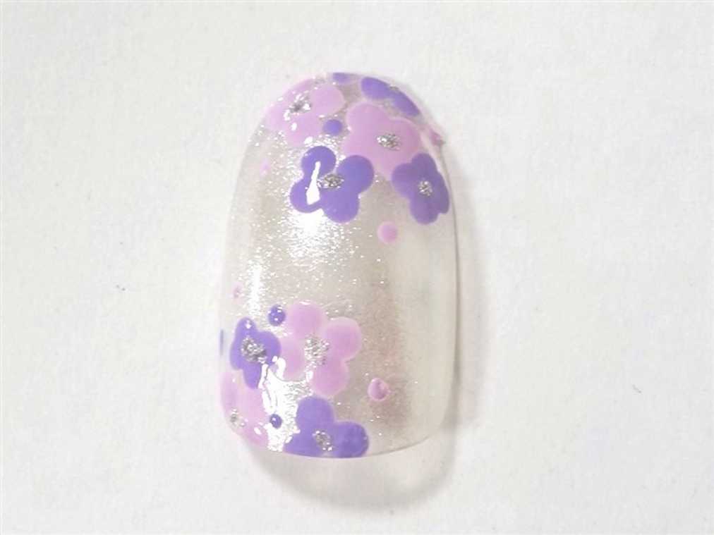 今度は紫のネイルポリッシュを使って、ピンクバイオレットの花の上に重ねるようにして、同様に花びらを描きます。すべて同じ大きさのお花にする必要はなし。あえて大きさを変えて描いた方がまとまりもよくなります。