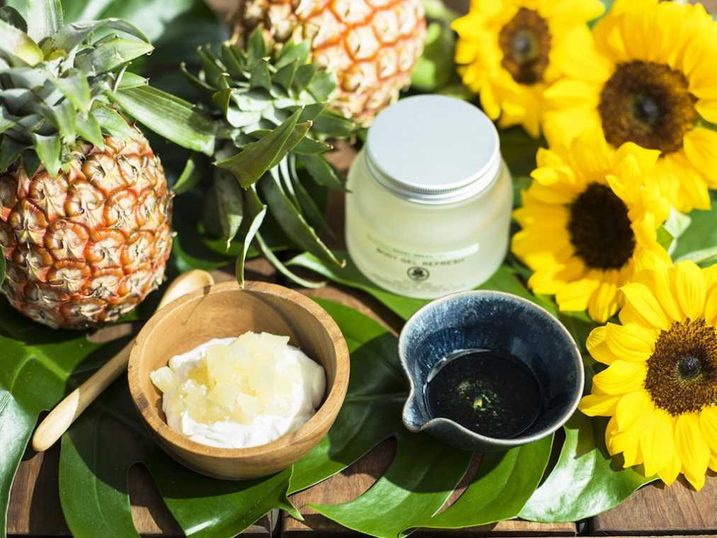 期間限定メニューのなかには、なんとボディトリートメントも。37階『AO スパ&クラブ』で受けられる「サマーエスケープ」90分/2万3000円(税・サ別)は、パイナップルとココナッツが配合されたボディスクラブでのケアの後、向日葵オイルと緑茶が香るボディジェルのブレンドで全身をマッサージ。暑さに疲れた体を内側から活性化してくれるので、リフレッシュできること間違いなし!