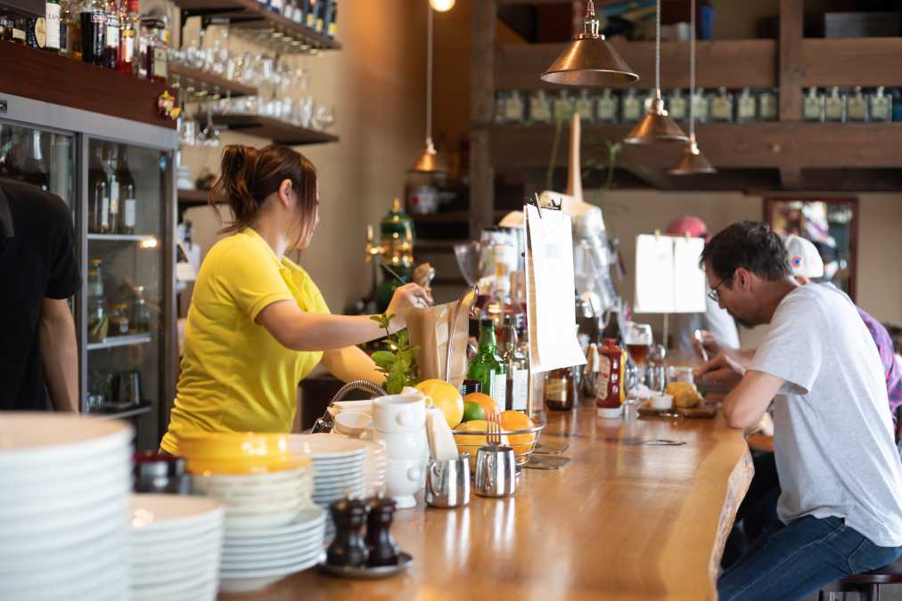 16〜17時は、フードはお休み。17時を過ぎると夜の営業に切り変わります。笑顔がステキな店長は、もともと京都で有名なウエディングプランニング会社で働いていたそう。サービスやホスピタリティにこだわる理由がわかります。