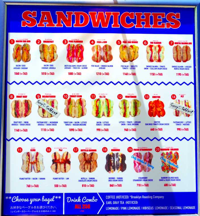 スプレッドやトッピング、ソースがすでに組み合わさった、おすすめメニューも20種類ほどあります。初めて来店した人でも、ここから選べば安心ですね。