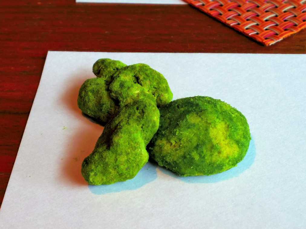 店頭の物販コーナーではこの「利休抹茶ぽるぼろん」(袋入り<13個>486円、箱入り<8個>463円)が販売されているのでお土産にどうぞ。