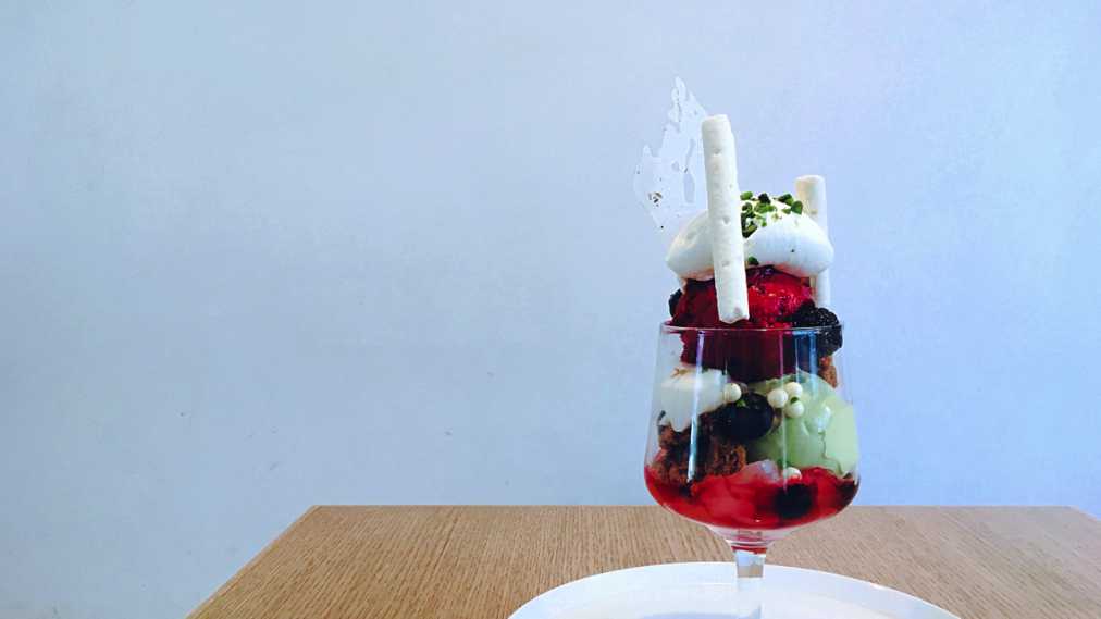 こちらはパフェに使うには珍しい酒粕と、そしてカカオ70%のビターチョコレートや、生姜が香るジュレなどを使っていたそうで、大人な組み合わせの1杯ですね。