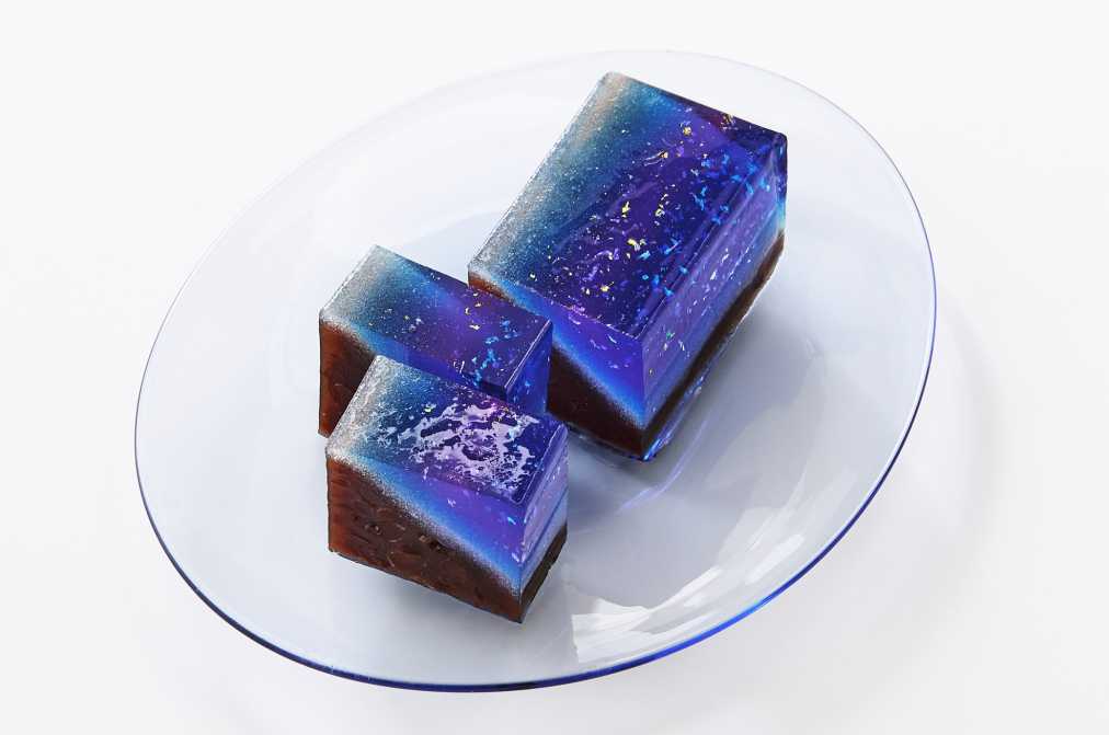 美しい“天の川”を羊羹で表現した創作和菓子「天の川」(1本240g)972円。琥珀羹には銀箔の星がちりばめられています。【菓遊庵/七條甘春堂】