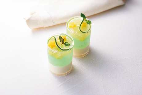 星形ゼリーが七夕らしさを感じさせる「七夕シトラスゼリー」(1個)486円。ライム香るパンナコッタと、ナタデココ入りはちみつレモンゼリーの2層仕立てで爽やかに。【地下2階 洋菓子/明治記念館 菓乃実の杜】