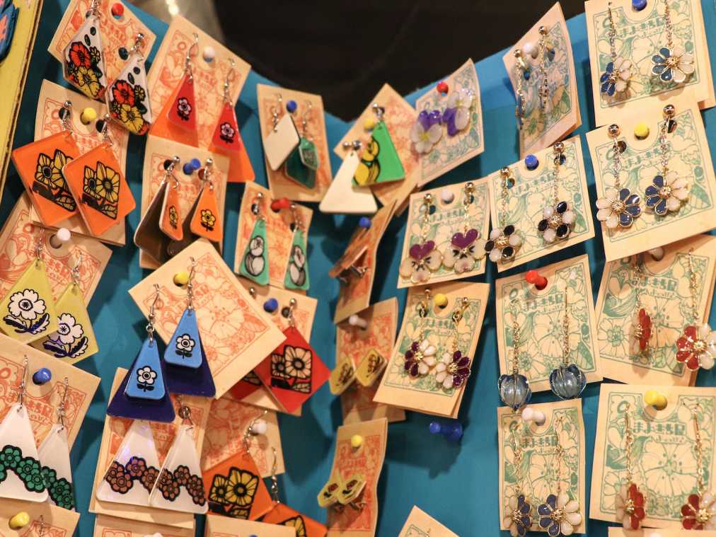 ハンドメイド作品の魅力は、「手作りならではの味があること」「世界に1つしかない特別感」でしょう。「素今歩」にずらりと並んだ箱の中には、運命を感じるアクセサリーとの出合いが待っているかも!?「素今歩 北口店」は特にアクセサリーが豊富で、中でも人と差のつくデコラティブなピアスが人気を集めているんです!