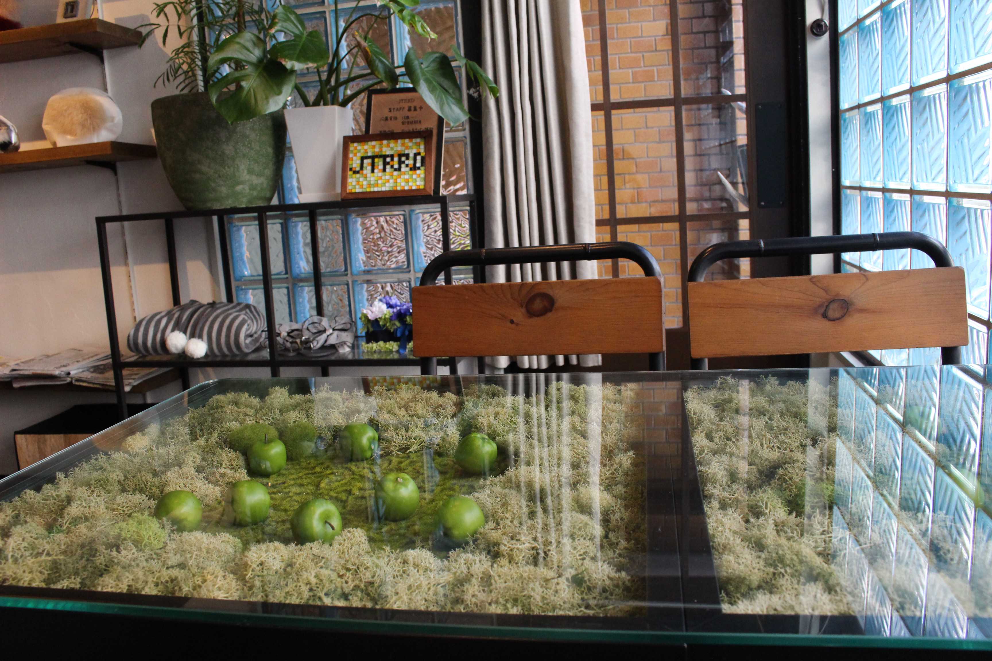 1席しかないガラス貼りテーブルも手作り。外から光がたっぷり差し込む窓際で、「とってもキレイに撮影できる!」と人気です。