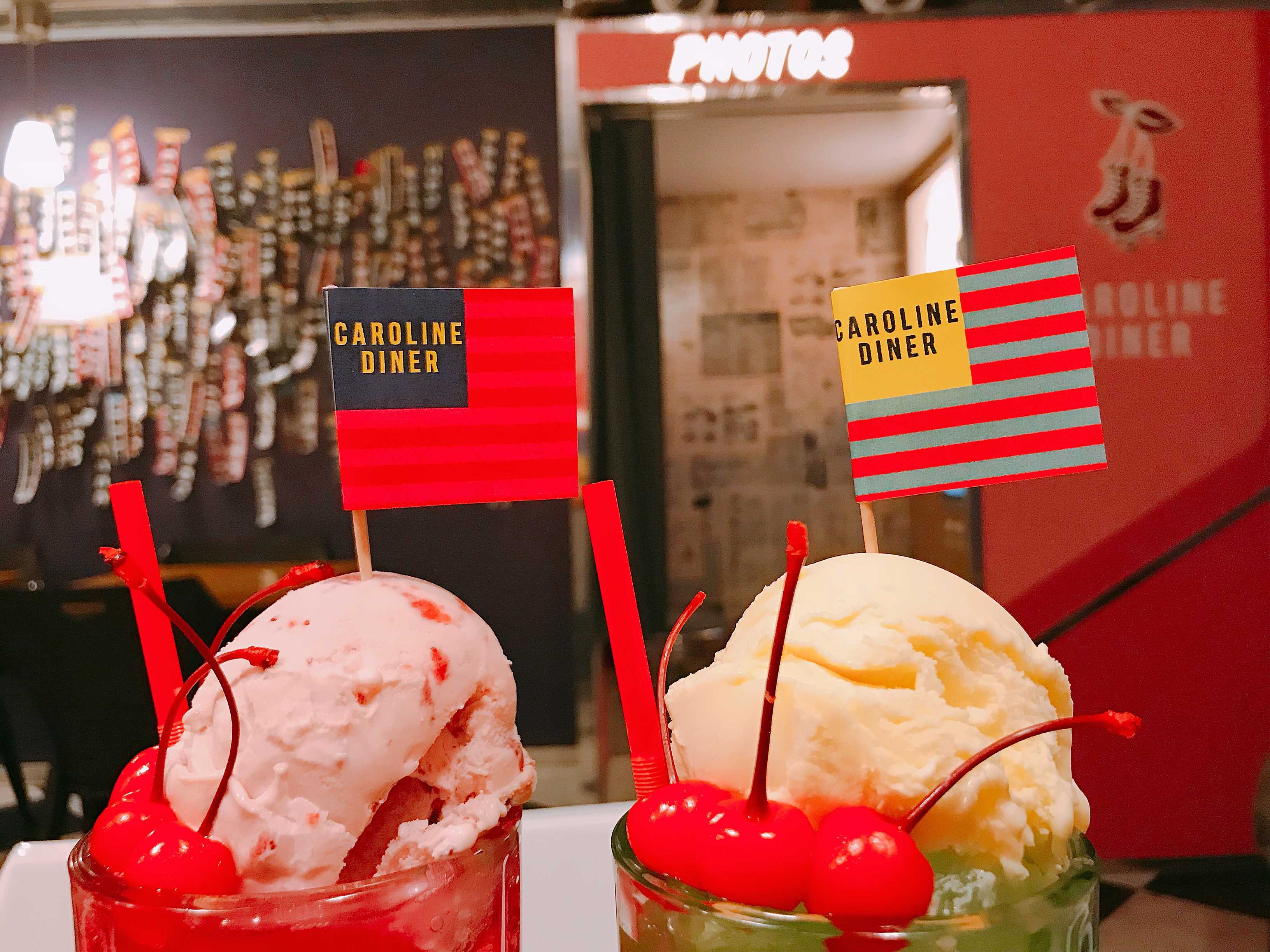 アメリカンな雰囲気の店内で、カラフルでポップなクリームソーダを飲めば、気分はまるでアメリカ映画の主人公!